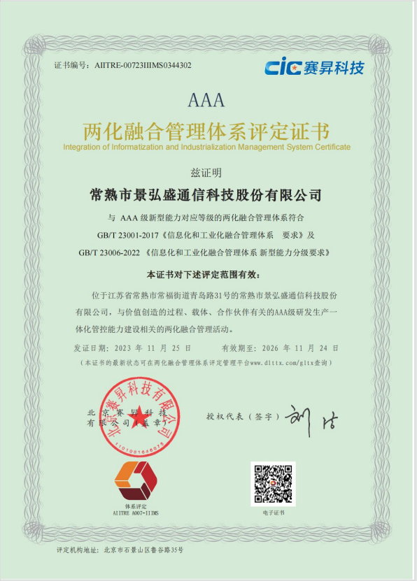 常熟景弘盛通信股份有限公司 誠信Integrity 團結Unity 創新Innovation 感恩Gratitude。